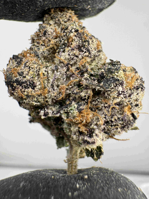 Medium-sized, dense nugs that look like they’ve been dipped in sugar. Covered in thick layers of trichomes, with deep greens and hints of violet peeking through — this strain is a visual knockout and every bit as premium as it looks.