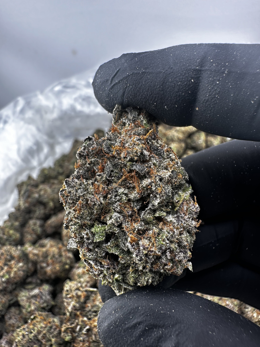 Every nug is a masterpiece — evenly sized, medium, and drenched in trichomes. Break them open and you’ll find a frosty, colorful core that sparkles under the light. It’s the kind of bud that looks too good to touch — but way too good not to smoke. 💜🧊🎨